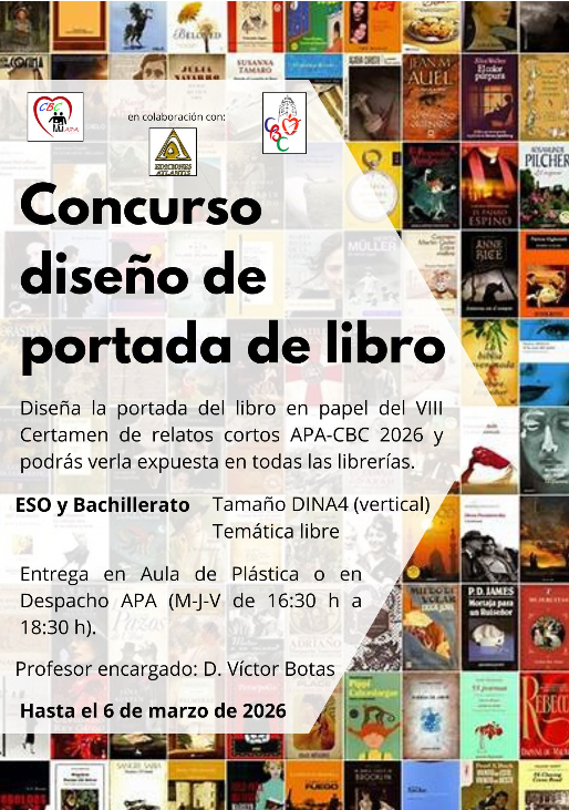 Concurso organizado por APA CBC y Ediciones Atlantis (www.edicionesatlantis.com) para ilustrar la portada del libro de relatos cortos realizado por el alumnado de CBC.