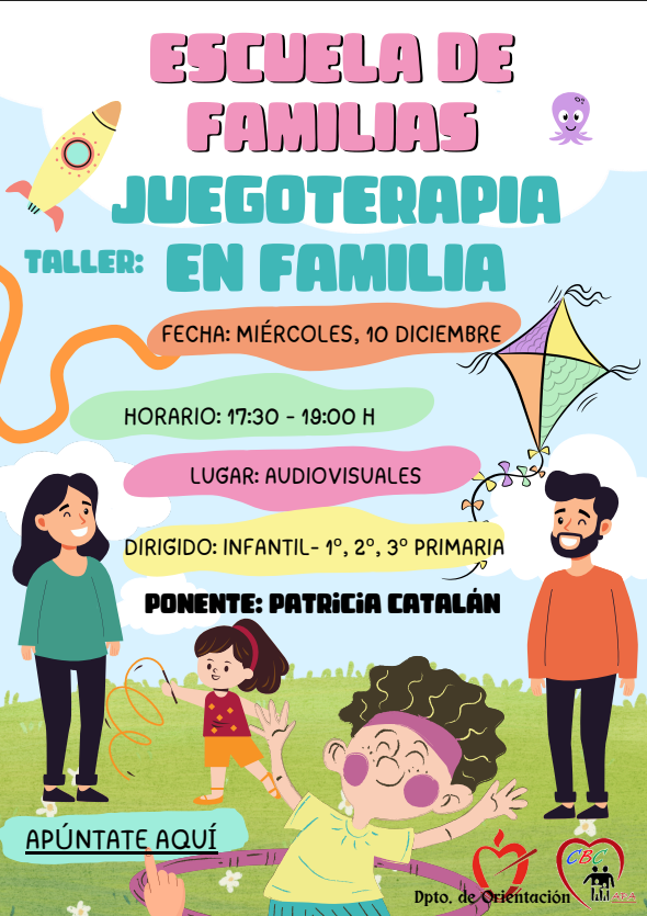 Estimadas familias: por motivos organizativos os rogamos la confirmación de asistencia al taller Juegoterapia en familia que tendrá lugar el próximo miércoles, 10 de diciembre, de 17:30 a 19:00 h en Audiovisuales.